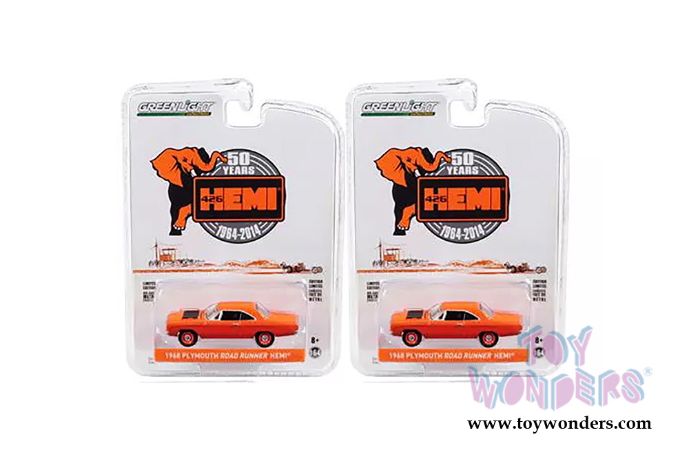 Greenlight - Anniversary Collection Series 8 | Plymouth HEMI Road Runner - 426 HEMI 50 Years (1968, 1/64 scale diecast model car, Orange) 27980C/48