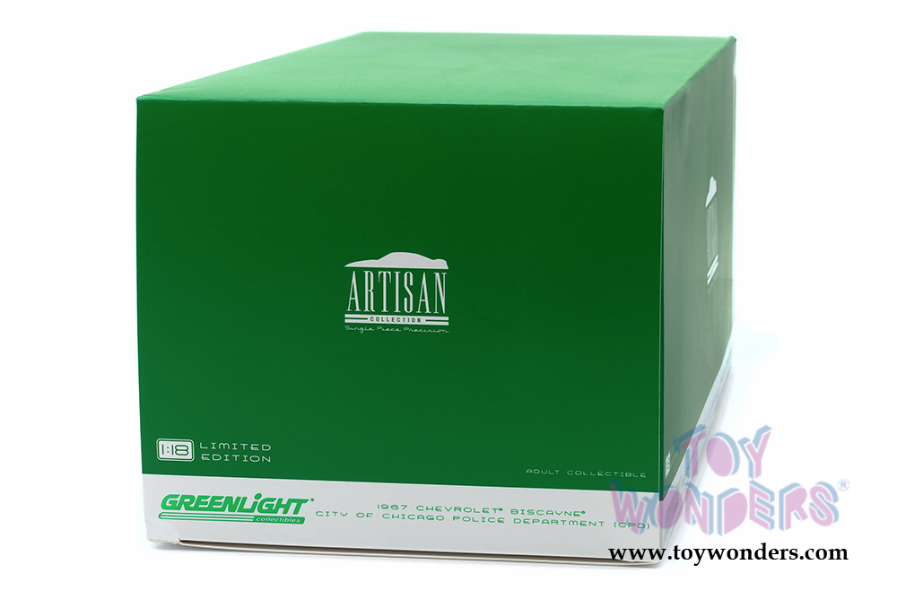 Greenlight - Artisan Chevy Biscayne - city of Chicago Police Department (1967, 1/18 scale diecast model car, Blue with White) 19009
