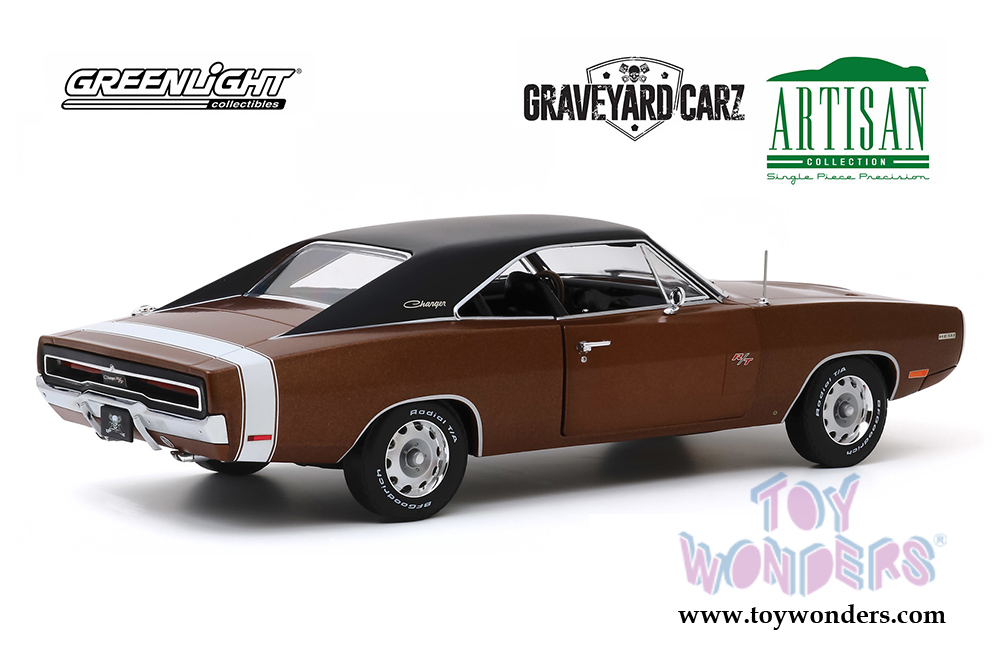 Greenlight - Artisan Dodge Charger R/T Graveyard Carz 2012 - Current TV Series (1970, 1/18 scale die cast model car, Dark Burnt Orange/Black) 19077