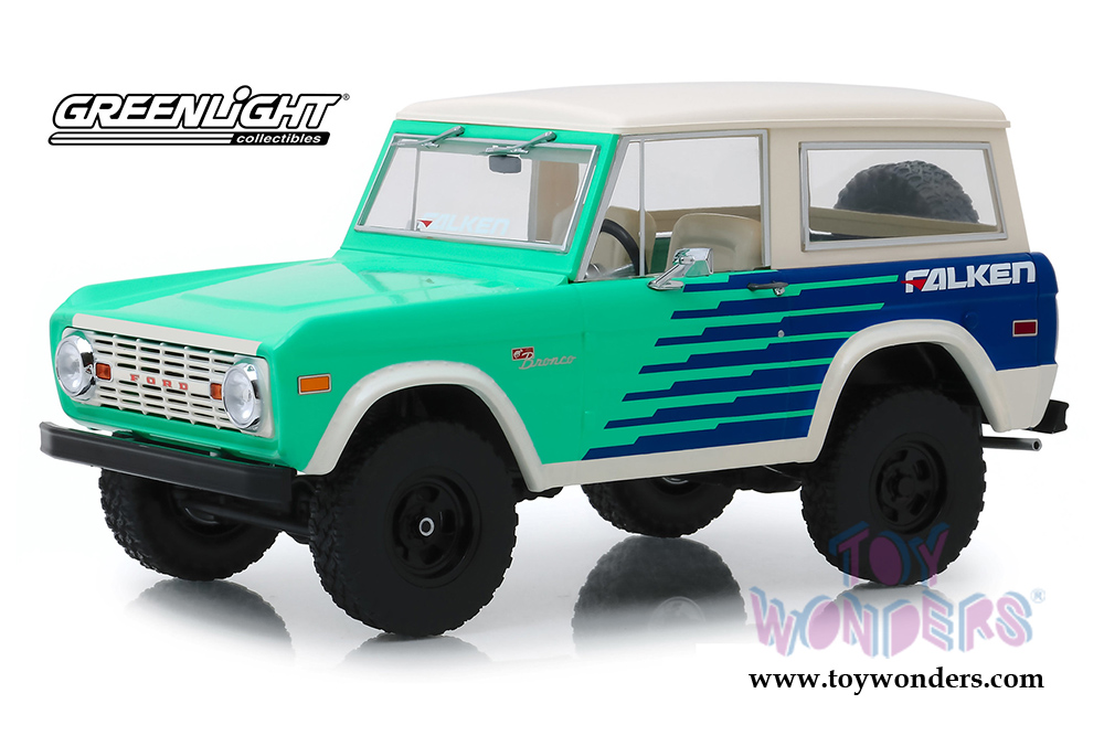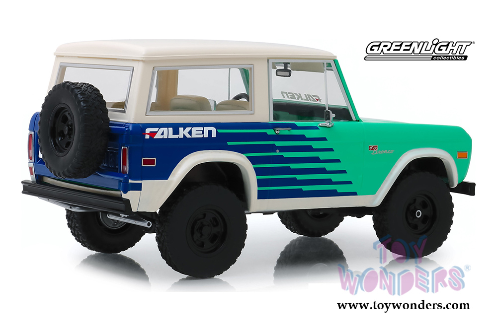 Greenlight - Artisan Ford Bronco Falken Tires (1976, 1/18 scale die cast model car, Green/Blue) 19070