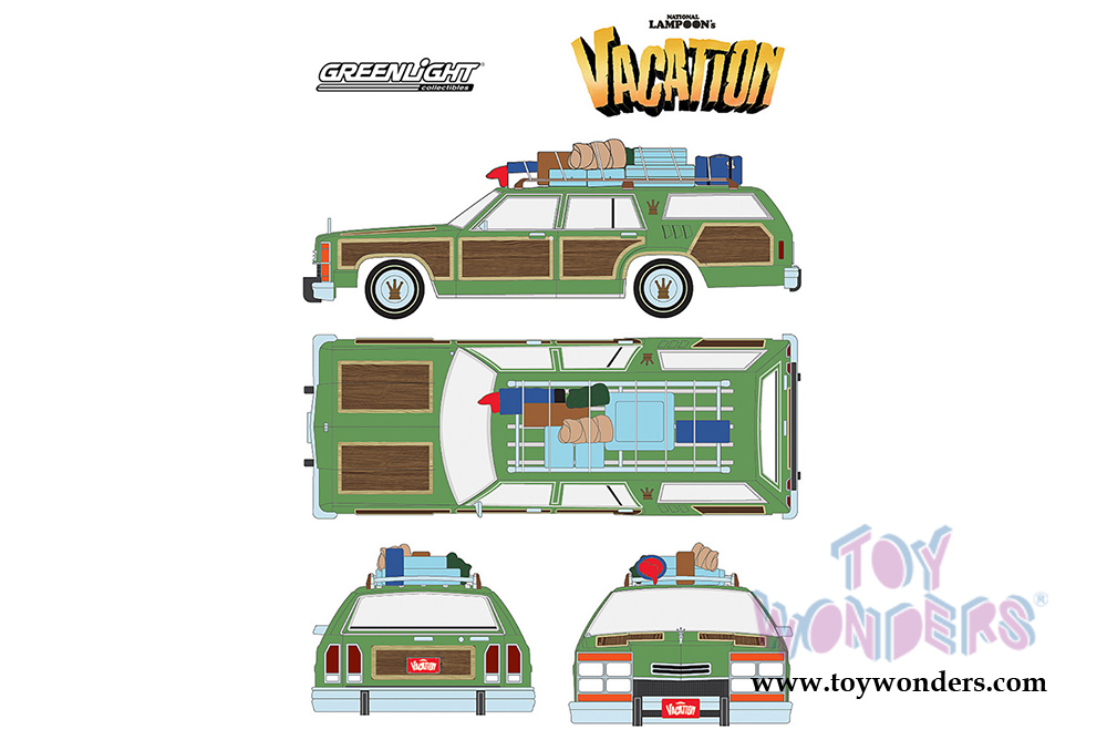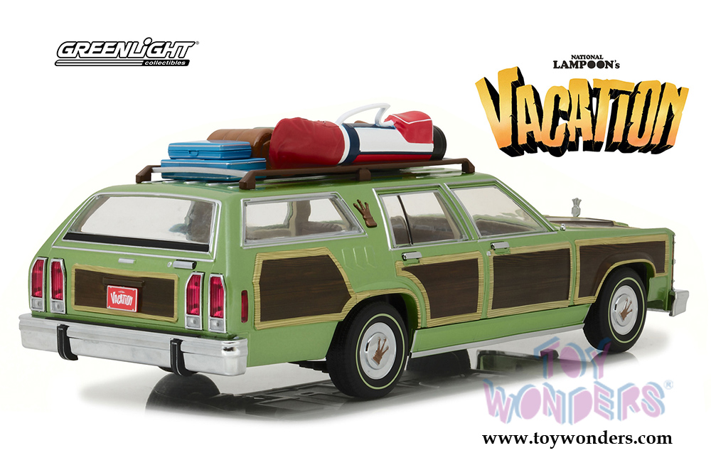 19031 Greenlight Artisan - National Lampoon's Vacation Family Truckster 'Wagon Queen" with luggage. 1:18 scale diecast collectible model. This wagon is 10.5"L x 4.5"W x 3.5"H die cast model car. GreenLight Hollywood takes iconic film and television vehicles from both the past and present and brings them to life with four-wheeled diecast replicas. Limited edition. Item 19031 is in GREEN color. Individually packed in a decorated Box. Box size: 13.5"Lx 6.5"Wx 5.5"H.