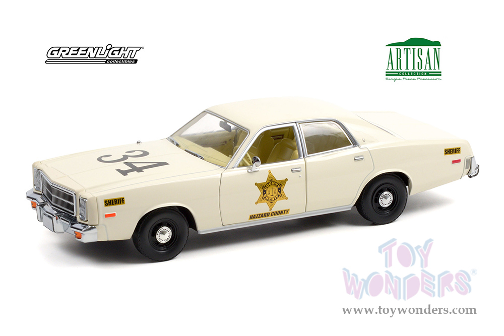 Greenlight - Artisan Plymouth Fury #34 Riverton Sheriff- Hazzard County (1977, 1/18 scale diecast model car, Cream) 19112
