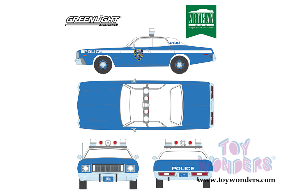 Greenlight - Artisan Plymouth Fury Police Pursuit - New York Police Department NYPD (1975, 1/18 scale diecast model car, Blue) 19043