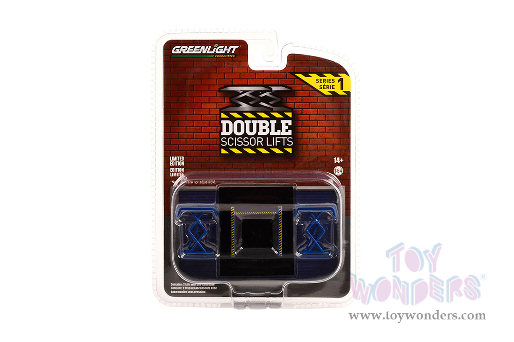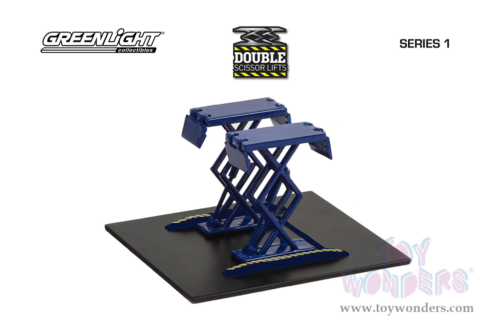 Greenlight - Auto Body Shop | Automotive Double Scissor Lifts Series 1 - Blue (1/64 scale diecast model, Blue) 16160A/48
