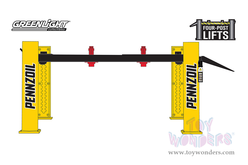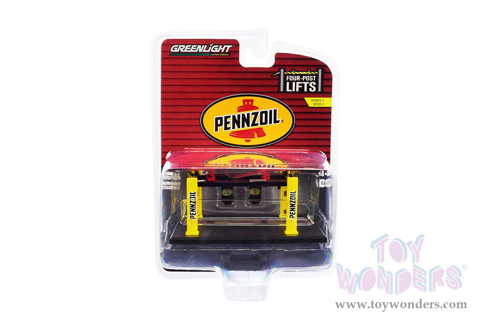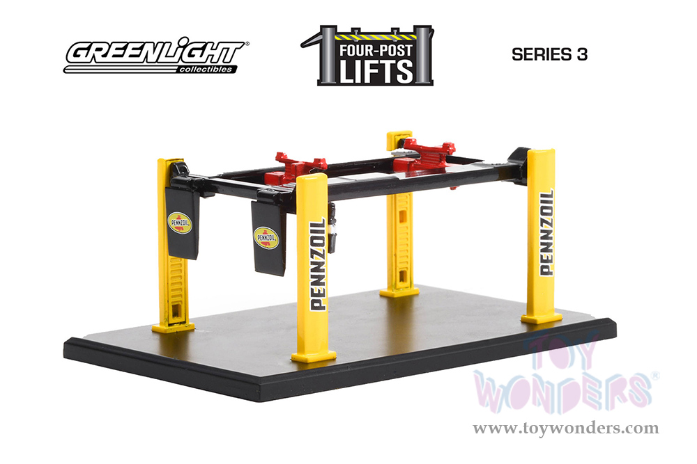 Greenlight - Auto Body Shop - Four-Post Lifts Series 3 - Pennzoil (1/64 scale diecast model, Black/Yellow) 16130C/48