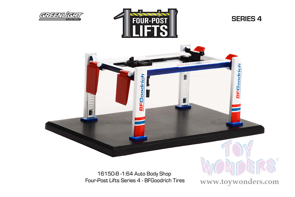 Greenlight - Auto Body Shop | Four-Post Lifts Series 4 - BFGoodrich (1/64 scale diecast model, White/Red) 16150B/48