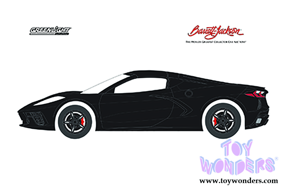 37220F/48 Greenlight - Barrett Jackson Scottsdale Series 6 | 2020 Chevrolet® Corvette C8 Stingray VIN #001 (Lot #3007). 1:64 scale diecast collectible model. These cars are about 2.75" long diecast metal cars. Each car individually blister carded. Card size: 6" x 8". 6 pcs/inner. Manufactured by Greenlight. 37220F/48 is in Black.
