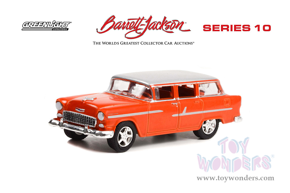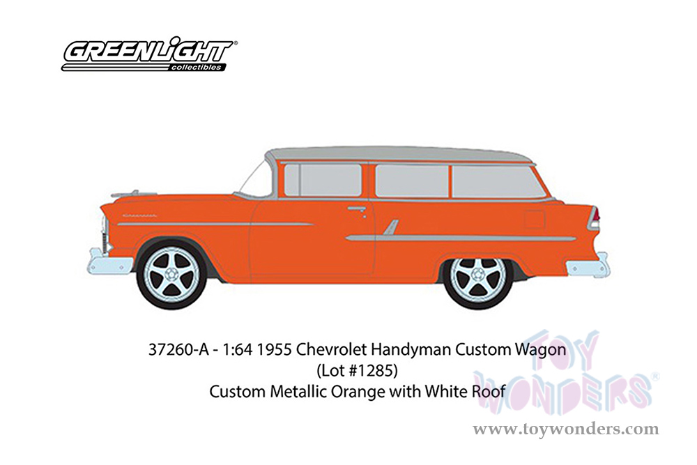 Greenlight - Barrett Jackson Series 10 | Chevrolet® Handyman Custom Wagon (Lot #1285) (1955, 1/64 scale diecast model car, Custom Metallic Orange with White Roof) 37260A/48