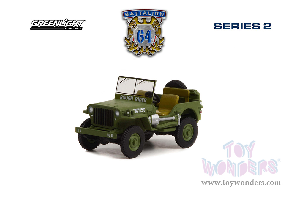Greenlight - Battalion 64 Series 2 | Theodore Roosevelt’s 1942 Willys MB Jeep® #20362162-S Green "U.S. Army World War II - Rough Rider" (1942, 1/64 scale diecast model car, Green) 61020A/48