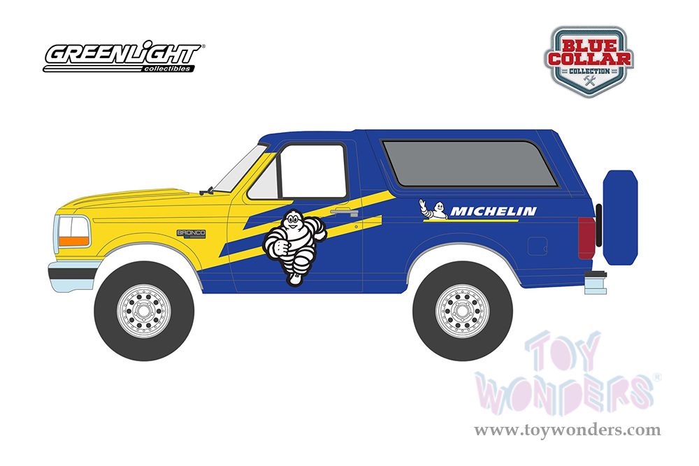 Greenlight - Blue Collar Collection Series 11 | Ford Bronco XL - Michelin Tires (1996, 1/64 scale diecast model car, Blue/Yellow) 35240D/48