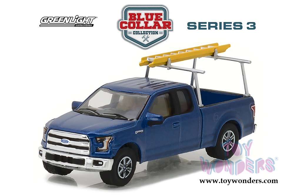 Greenlight - Blue Collar Collection Series 3 | Ford F-150 Pickup Truck with Ladder Rack (2015, 1/64 scale diecast model car, Blue) 35080E/48