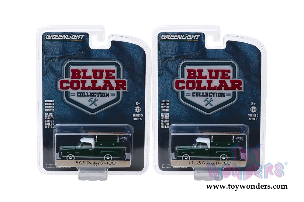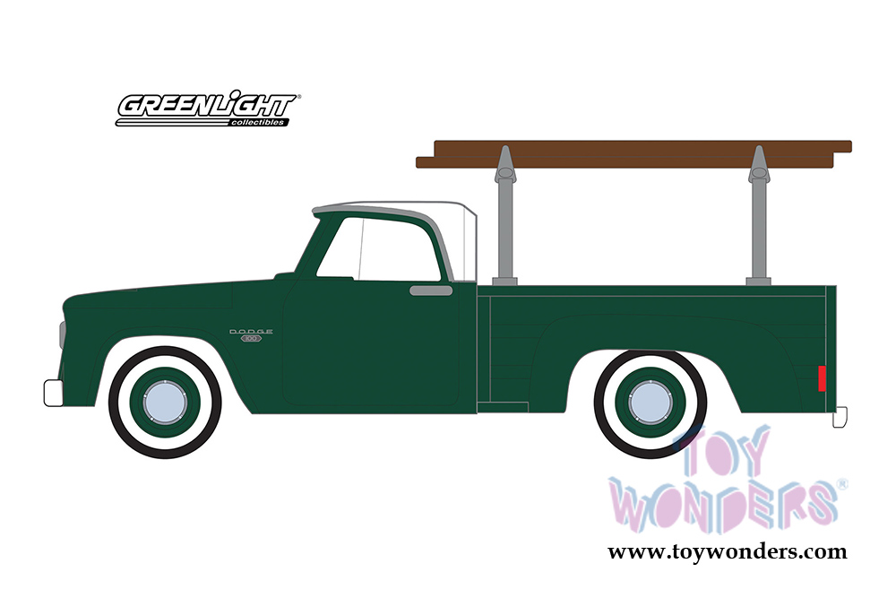 Greenlight - Blue Collar Collection Series 5 | Dodge D-100 with Ladder Rack (1963, 1/64 scale diecast model car, Green/White) 35120B/48