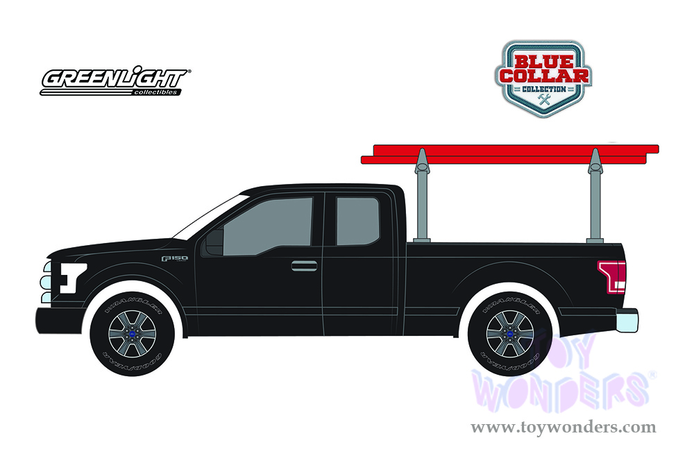 Greenlight - Blue Collar Collection Series 9 | Ford F-150 with Ladder Rack (2017, 1/64 scale diecast model car, Black) 35200F/48
