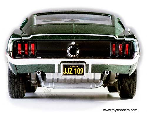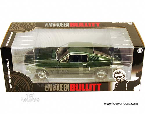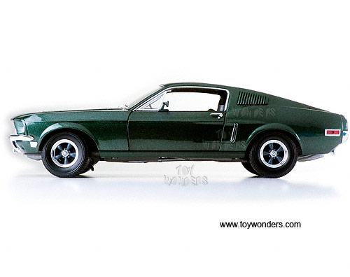 12822 Greenlight Bullitt - 1968 Ford Mustang GT Hard Top. 1:18 scale diecast collectible model car. This 1968 Ford Mustang GT is a 10"L x 3.5"W x 2.5"H die-cast collection car with openable hood, doors & trunk. This Ford Mustang GT is manufactured by Green Light. Limited edition 1 of 2004 pcs. Item 12822 is in HIGHLAND GREEN color. Individually packed in a window box. Box size: 13.25"L x 6.25"W x 5"H.
