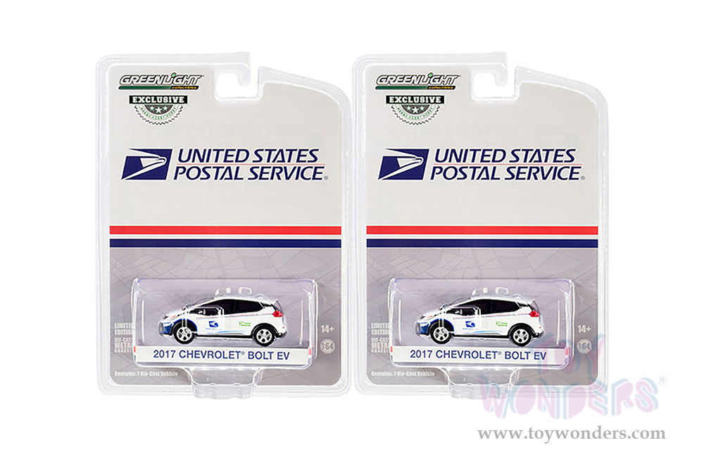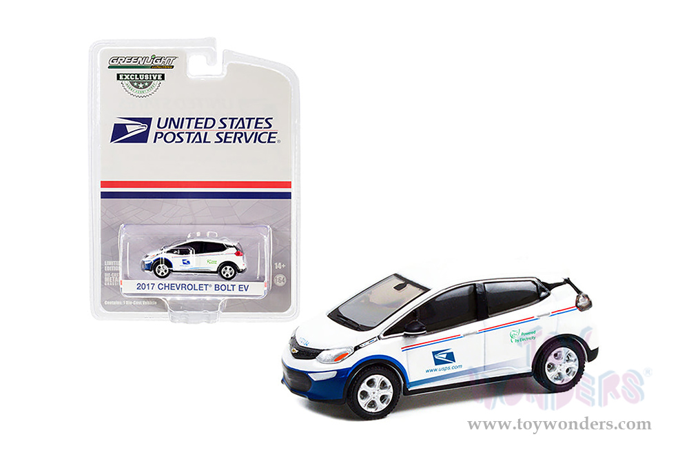 Greenlight - Chevrolet® Bolt - United States Postal Service (USPS®) "Powered by Electricity" (2017, 1/64 scale diecast model car, Blue/White) 30263/48