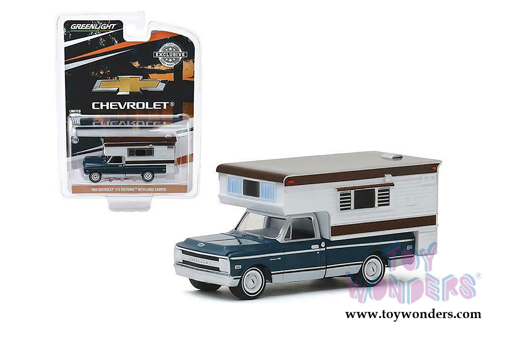 Greenlight - Chevrolet® C-10 Cheyenne with Large Camper (1969, 1/64 scale die cast model car, Green) 30121/48