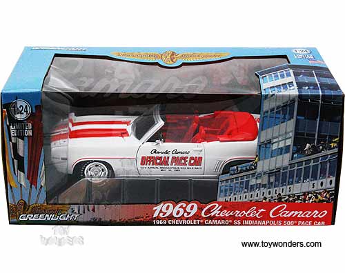 Greenlight - Chevrolet Camaro SS Convertible - Indianapolis 500 Pace Car (1969, 1/24 scale diecast model car, White w/ Stripes) 18217