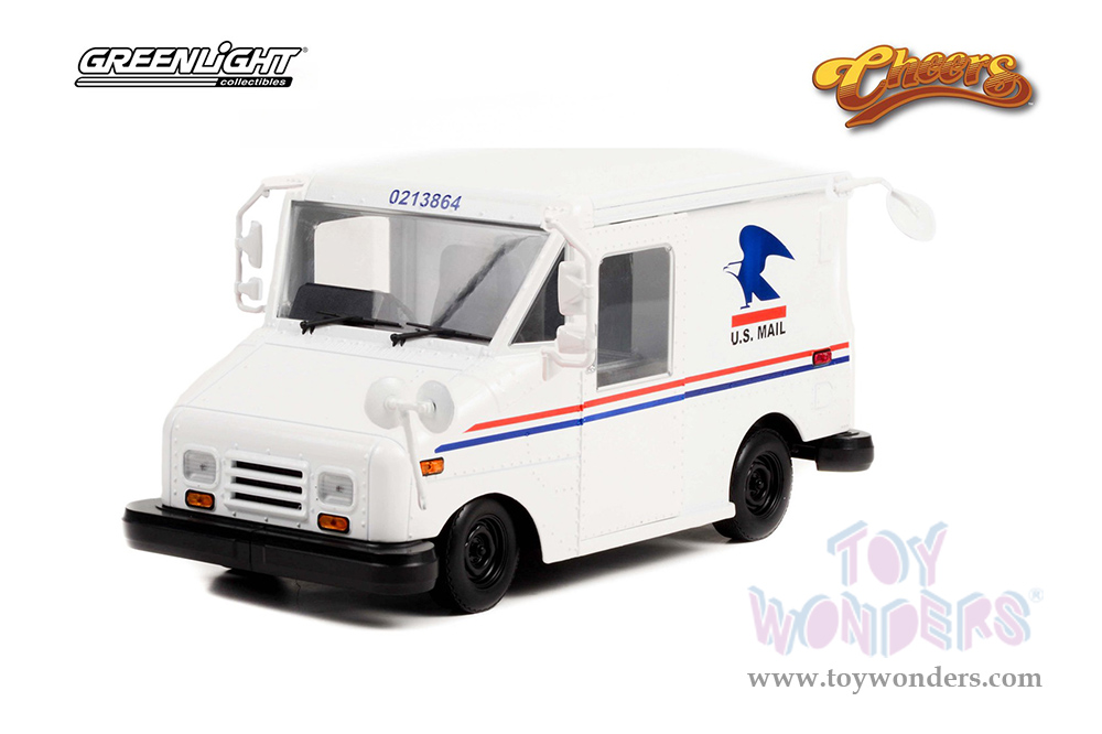 Greenlight - Cliff Clavin's U.S. Mail Long-Life Postal Delivery Vehicle (LLV) "Cheers®" (1982-1993) TV Series (1/18 scale diecast model car, White/Blue and Red stripes) 13572