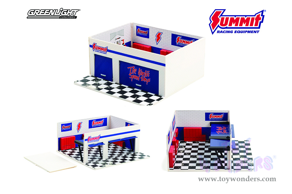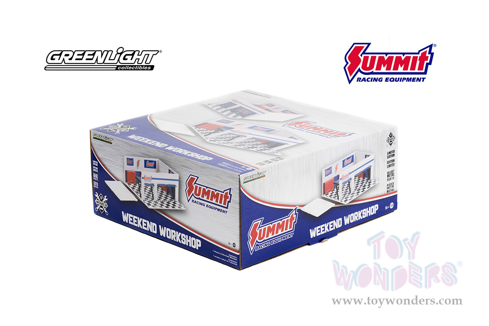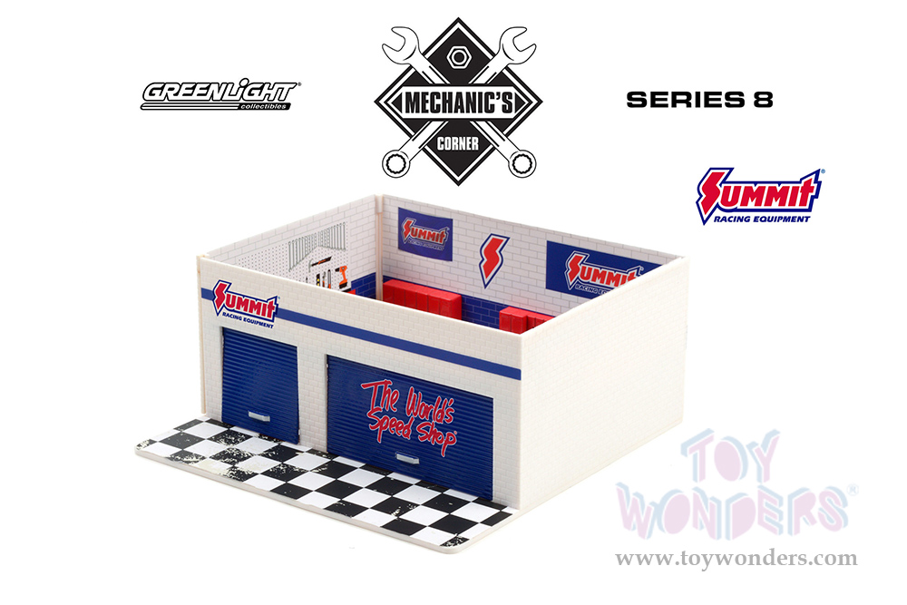 Greenlight Diorama - Mechanic's Corner Series 8 | Weekend Workshop Summit Racing Equipment (1/64 scale diecast/plastic model, White/Blue) 57082