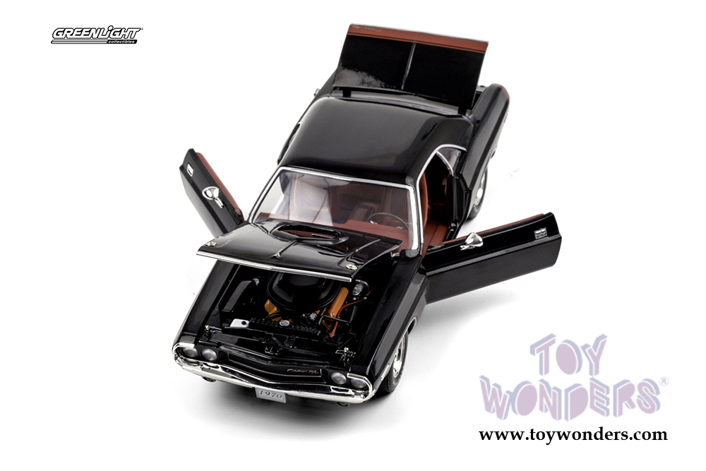 Greenlight - Dodge Challenger R/T 440 6-Pack with Deluxe Wheel Covers (1970, 1/18 scale diecast model car, Black) 13585