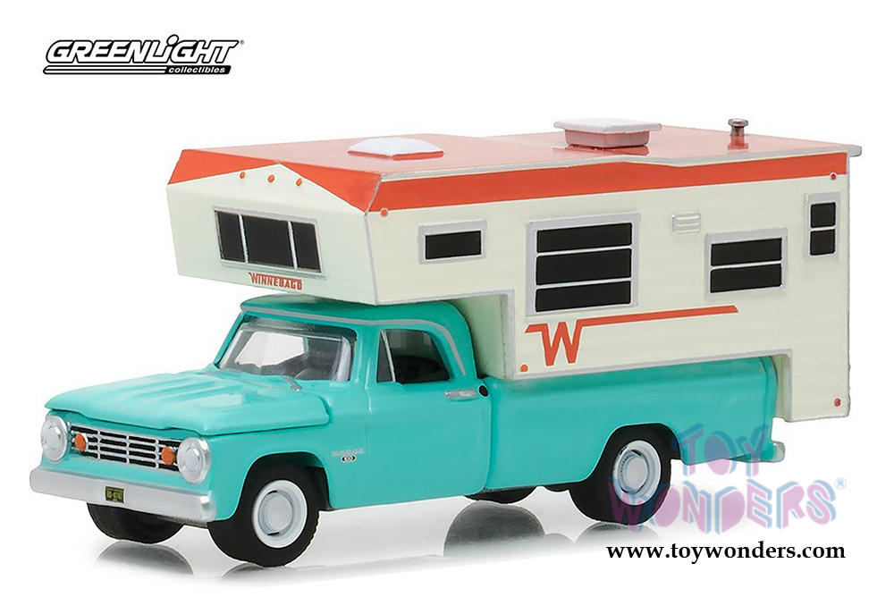 Greenlight - Dodge D-100 with Winnebago Slide-In Camper (1965, 1/64 scale diecast model car, Turquoise) 29923/48
