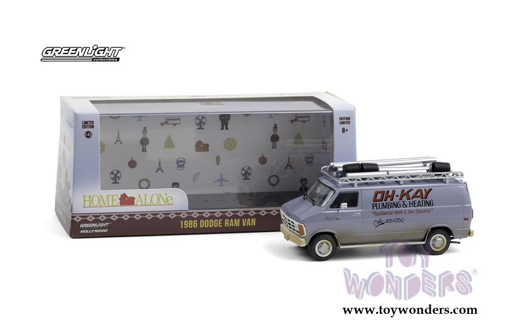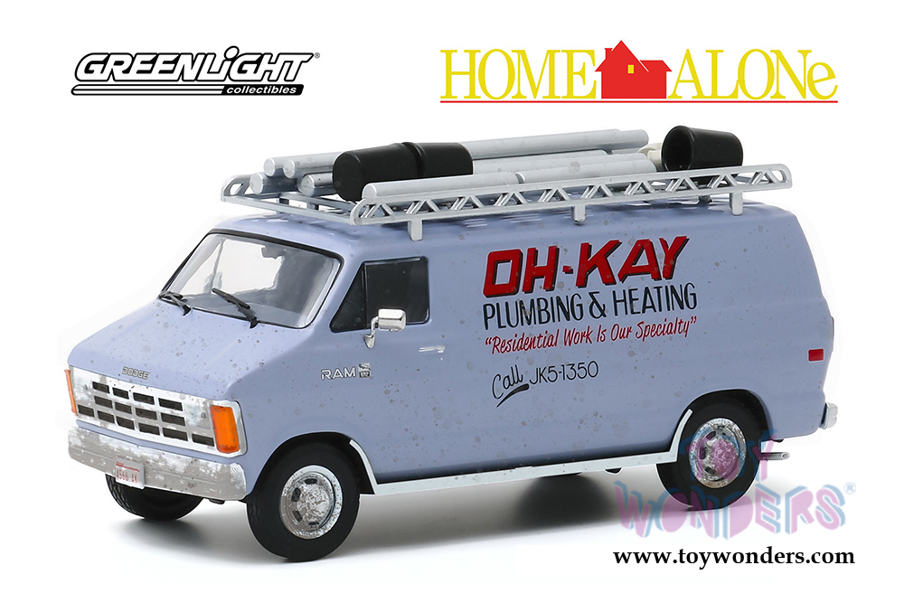 Greenlight - Dodge Ram Van "Oh-Kay Plumbing & Heating" - Home Alone (1990 Movie) (1986, 1/43 scale diecast model car, Blue Dirty) 86560
