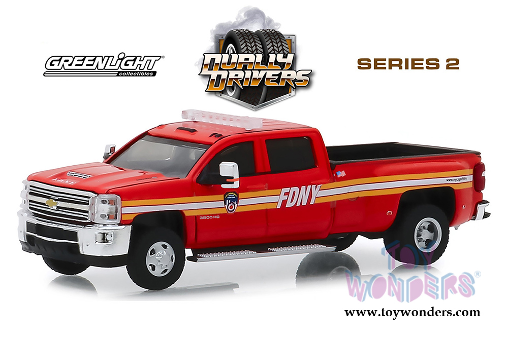 Greenlight - Dually Drivers Series 2 | Chevrolet® Silverado 3500 Dually - The Official Fire Department City of New York FDNY (2018, 1/64 scale diecast model car, Red) 46020A/48