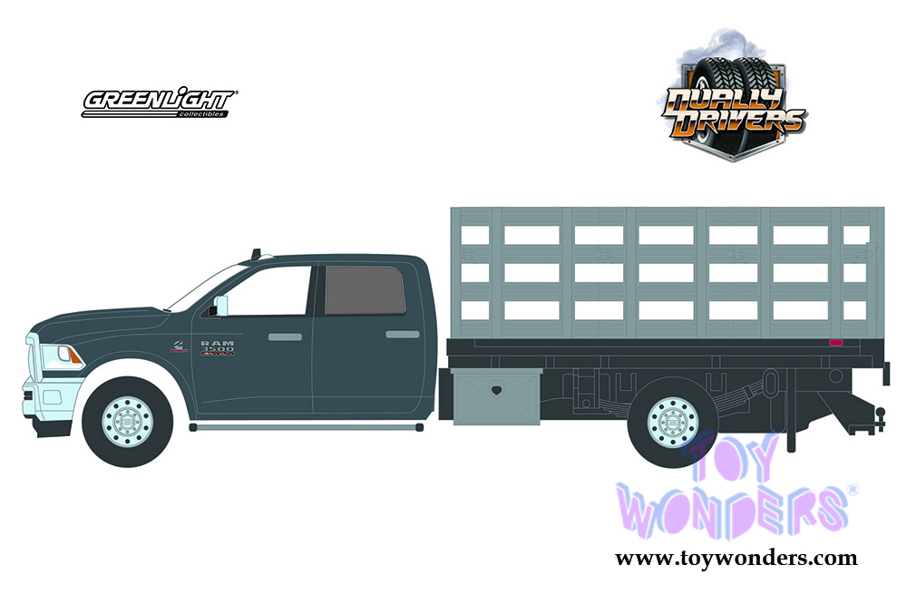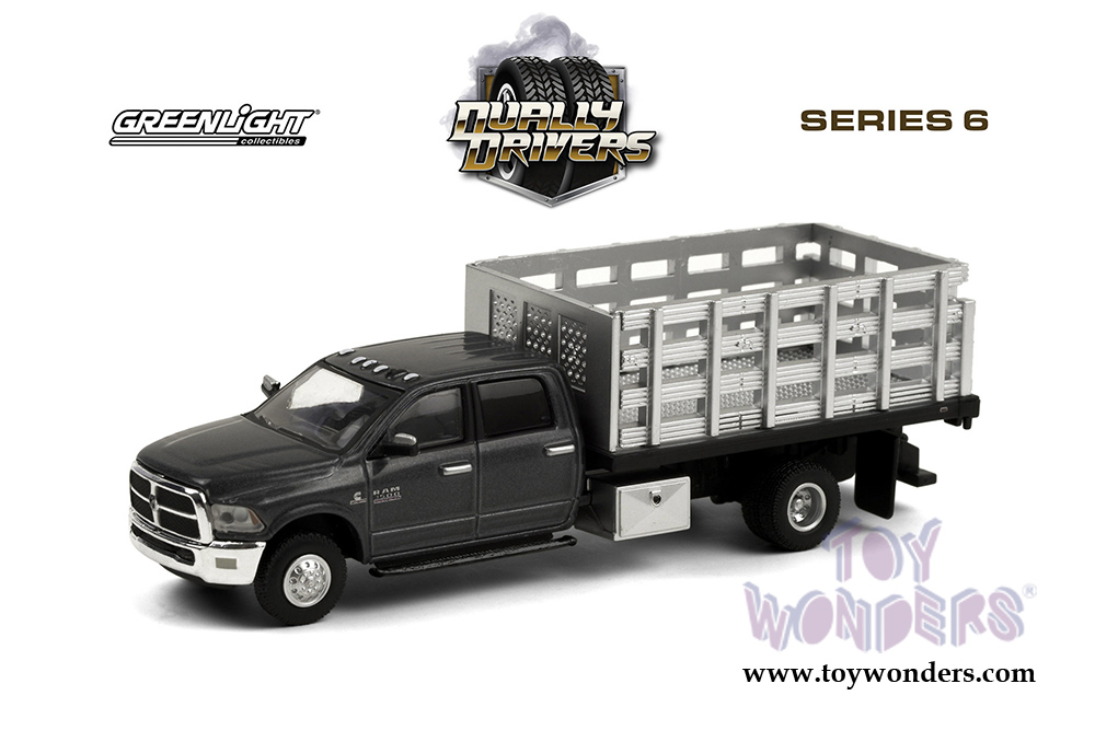 Greenlight - Dually Drivers Series 6 | Ram 3500 Dually Stake Truck (2018, 1/64 scale diecast model car, Gray) 46060E/48