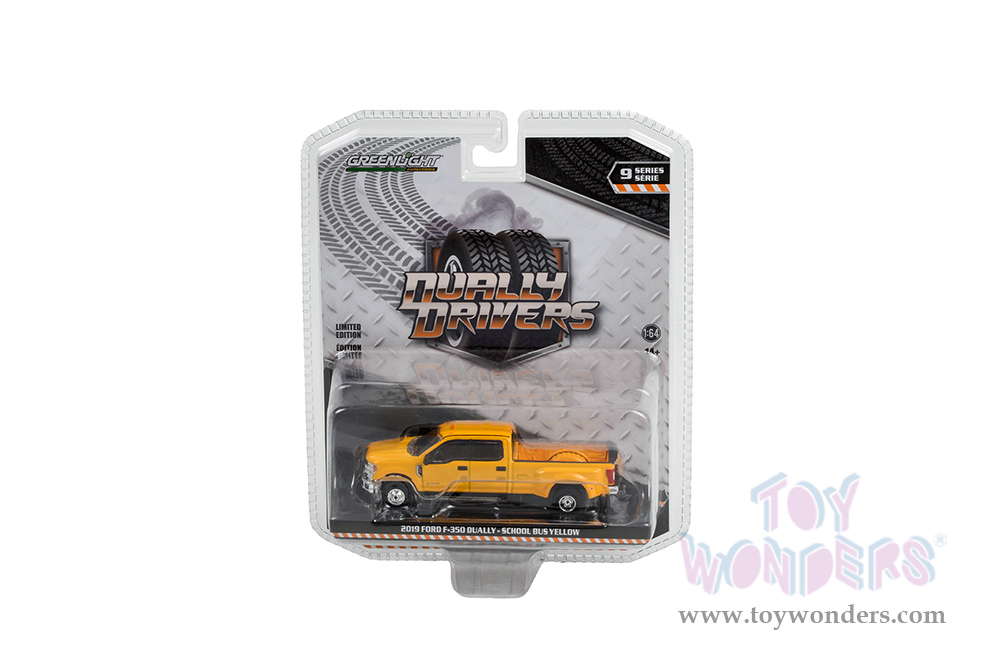 Greenlight - Dually Drivers Series 9 | Ford F-350 Dually Pickup Truck School Bus Yellow (2019, 1/64 scale diecast model car, Yellow) 46090D/48