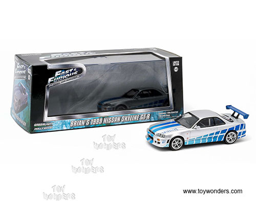 Greenlight Fast & Furious - Brian's Nissan Skyline GT-R Hard Top (1999, 1/43 scale diecast model car, Gray) 86208