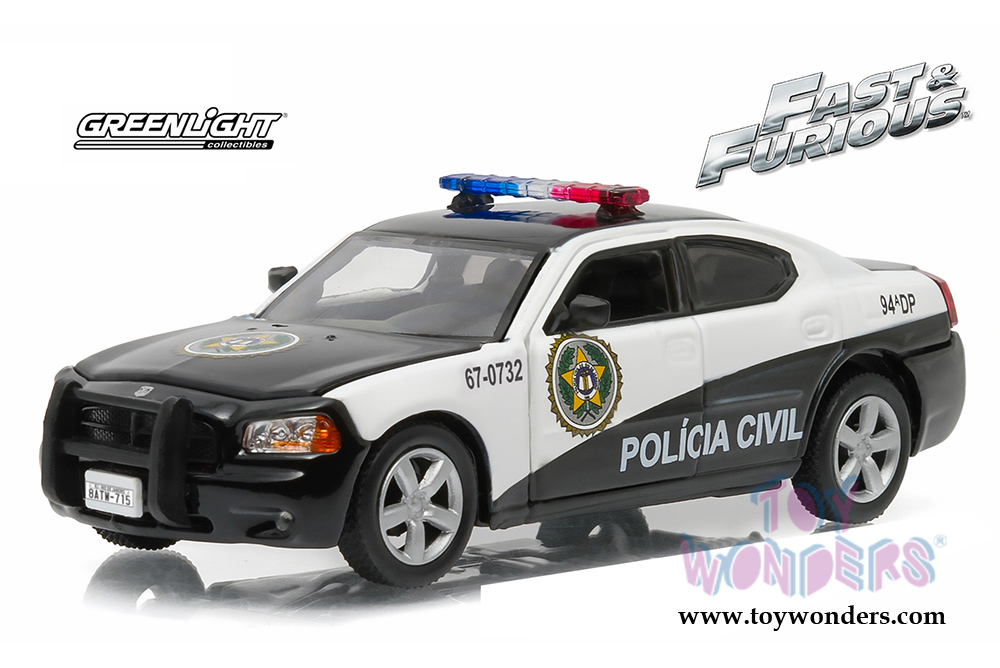 Greenlight Fast & Furious - Dodge Charger Rio Police "Policia Civil" Fast and Furious Fast Five Movie (2006, 1/43 scale diecast model car, Black/White) 86237