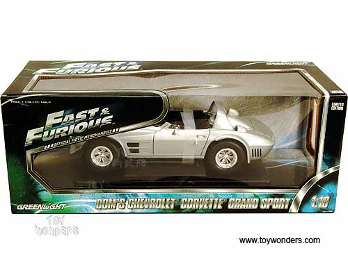 Greenlight Fast & Furious - Dom's Chevrolet Corvette Convertible Grand Sport (1963, 1/18 scale diecast model car, Silver) 12842