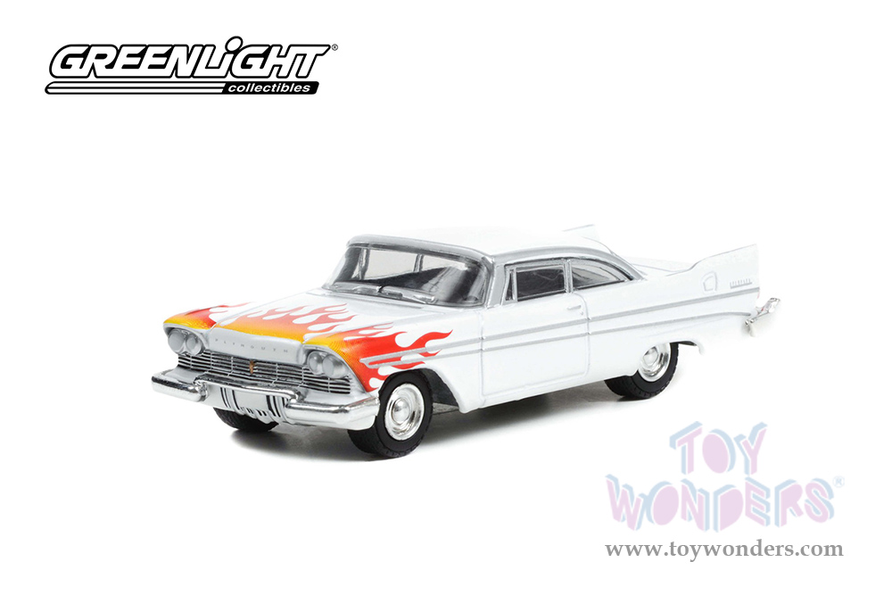 Greenlight - Flames The Series | Plymouth Belvedere (1957, 1/64 scale diecast model car, White with Flames) 30362/48