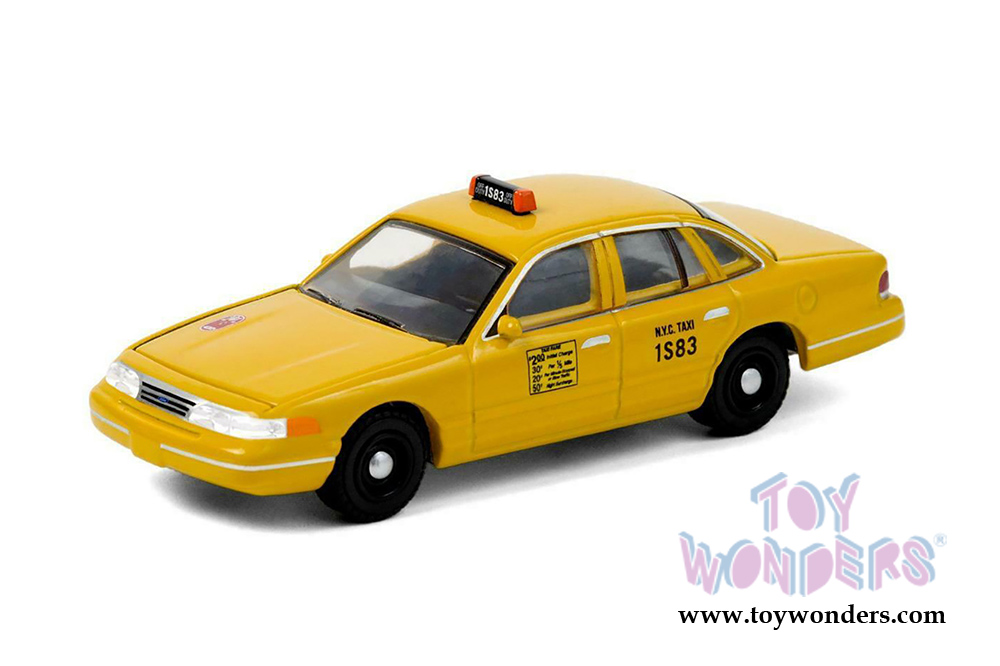30206/48 Greenlight - 1994 Ford Crown Victoria New York City Taxi. 1:64 scale diecast collectible model. This Ford Taxi is about 3.25" long diecast metal car. Individually blister carded. Card size: 7.5" x 5.75". 12 pcs/inner. Manufactured by Greenlight. 30206/48 is in Yellow.
