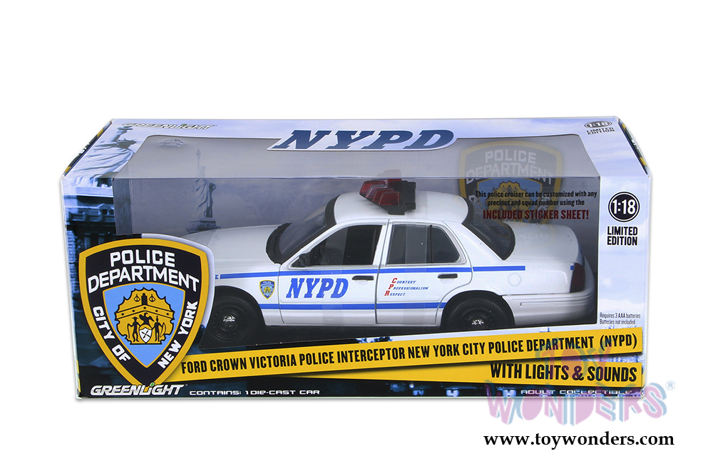 Greenlight - Ford Crown Victoria Police Interceptor NYPD (1/18 scale diecast model car, White/Blue) 12920