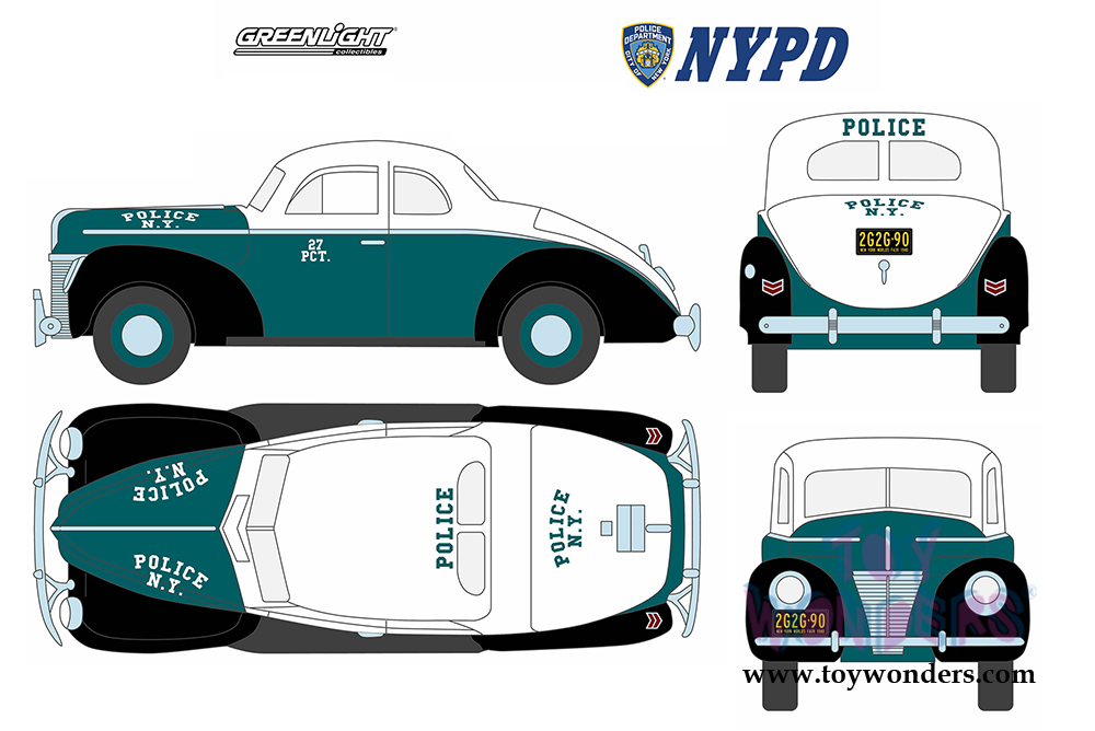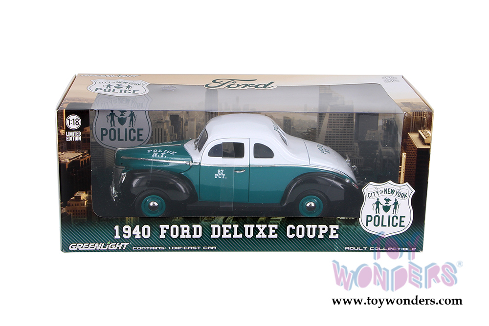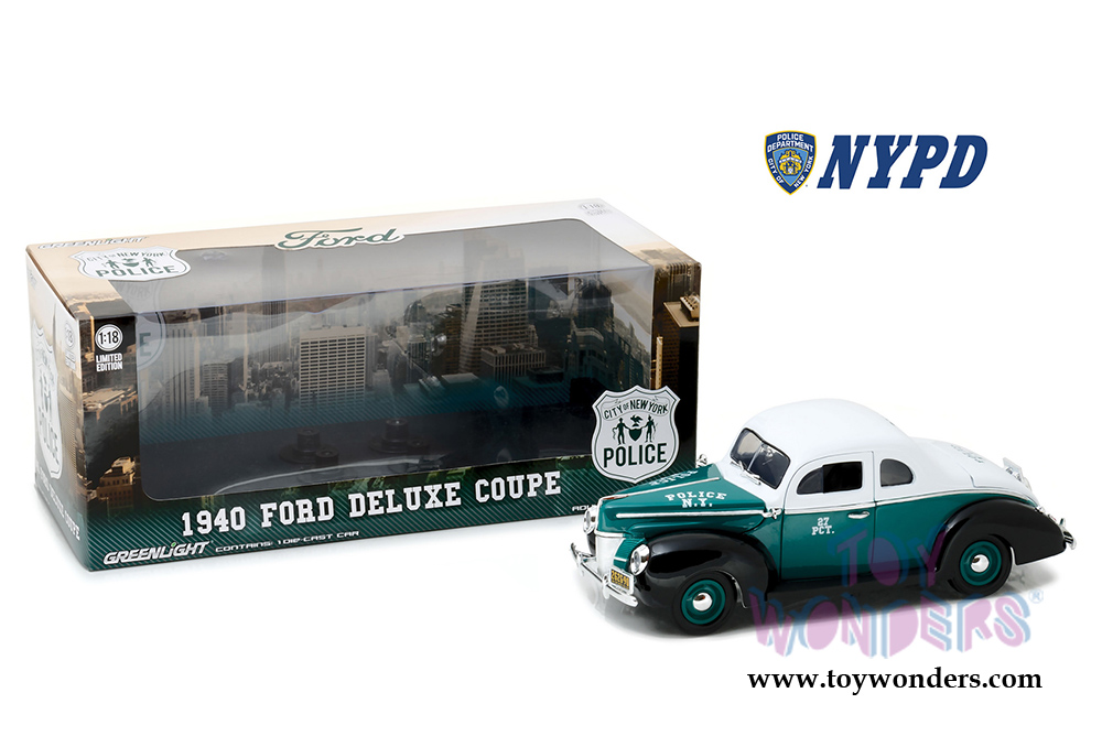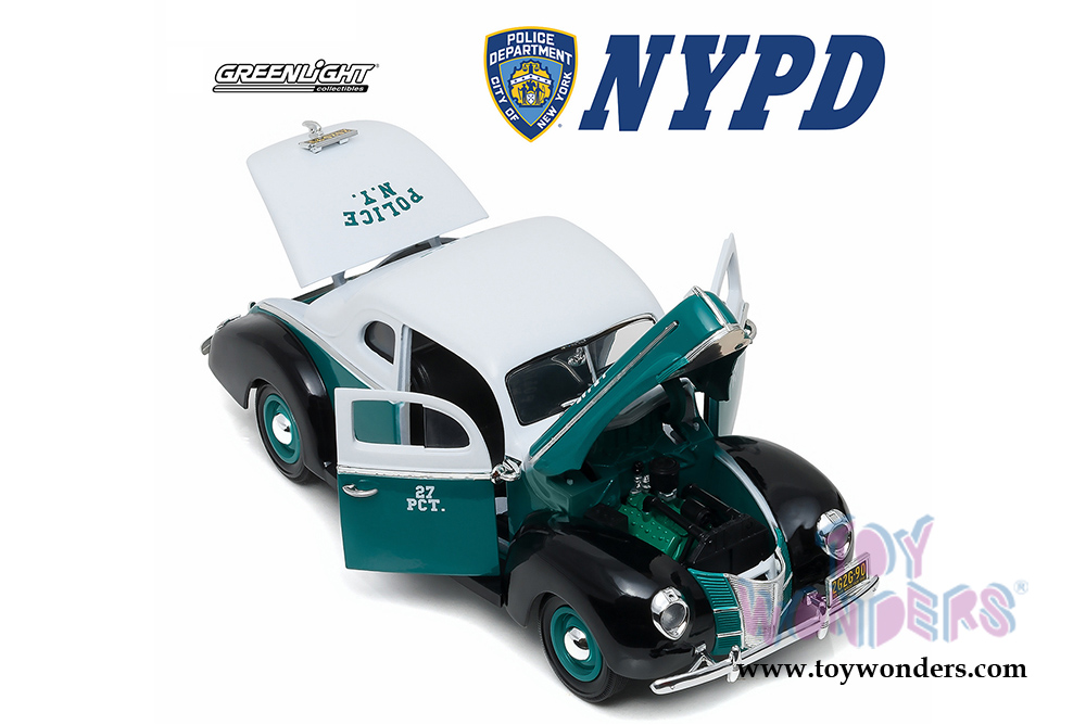 Greenlight - Ford Deluxe Coupe New York City Police Department NYPD (1940, 1/18 scale diecast model car, White/Green/Black) 12972
