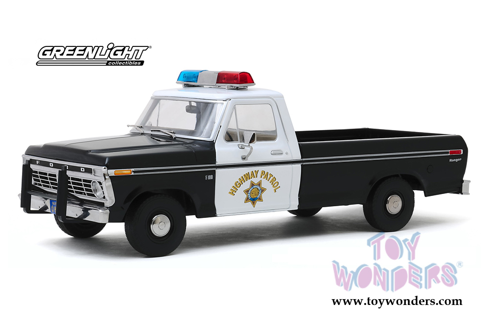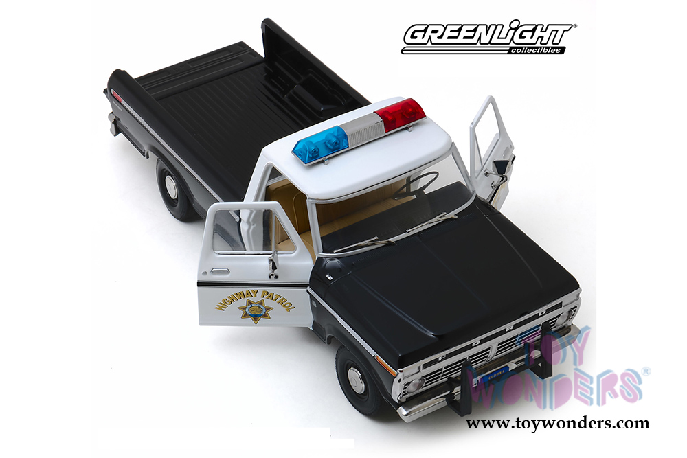 Greenlight - Ford F-100 Pickup Truck California Highway Patrol (1975, 1/18 scale diecast model car, Black/White) 13550
