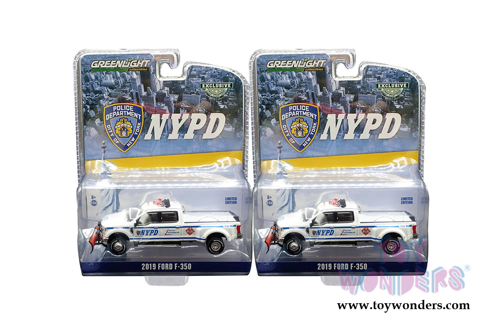 Greenlight - Ford F-350 Dually Pickup Truck with Snow Plow New York City Police Department (NYPD) (2019, 1/64 scale diecast model car, Black/White) 30216/48