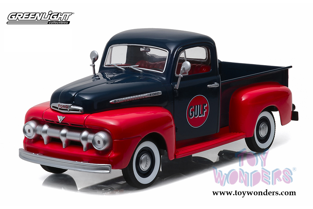 Greenlight - Ford F1 Pickup Truck Gulf Oil (1951, 1/18 scale diecast model car, Dark Blue w/Red) 12978