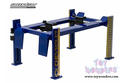 Greenlight - Four Post Lift Chevrolet Edition (1/18 scale diecast model accessory, Blue/Gold) 12918