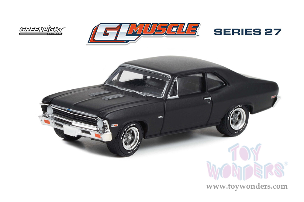 Greenlight - GL Muscle Series 27 | Chevrolet® Nova (1969, 1/64 scale diecast model car, Custom Matte Black) 13320B/48