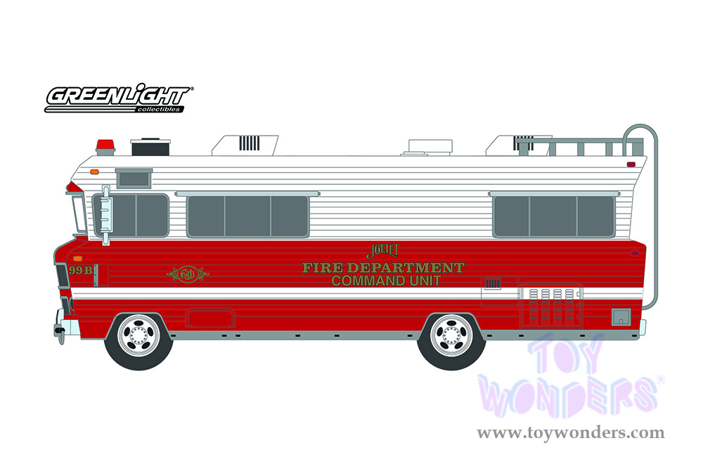 Greenlight - Heavy Duty Trucks Series 22 | Winnebago Chieftain "Joliet Fire Department Command Unit" (Illinois). (1973, 1/64 scale diecast model car, White/Red) 33220A/48