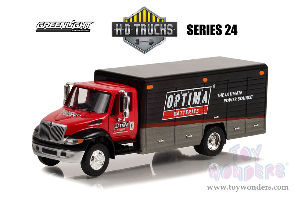 Greenlight - Heavy Duty Trucks Series 24 | International® Durastar 4400 Delivery Truck "OPTIMA Batteries" (1/64 scale diecast model car, Red/Black) 33240C/48