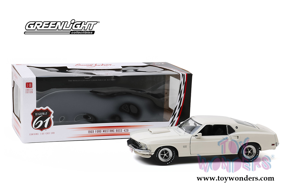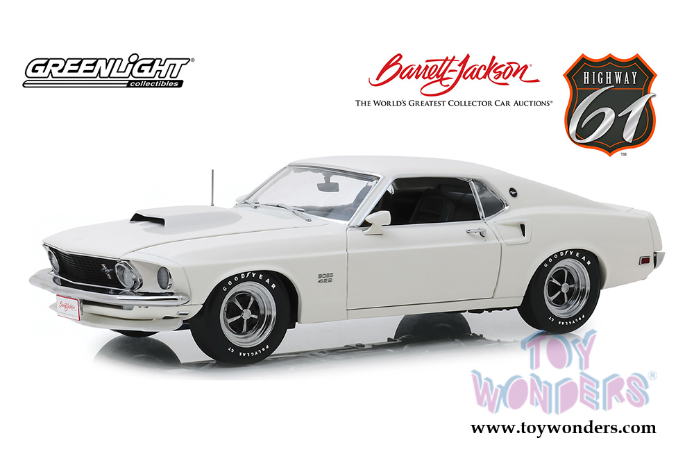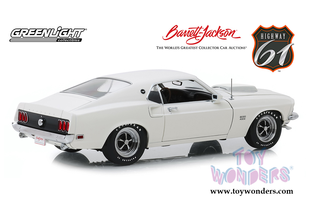 Greenlight Highway 61 - 1969 Ford Mustang BOSS 429 (Lot #1410) Barrett-Jackson Scottsdale 2018 (1969, 1/18 scale diecast model car, Wimbledon White) HWY18018