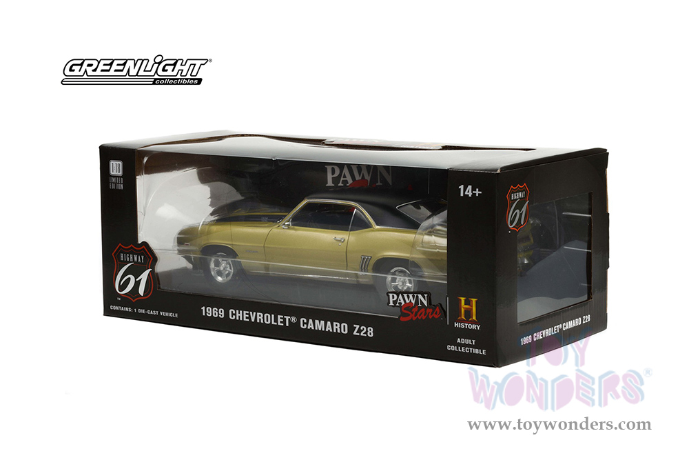 Greenlight Highway 61 - Pawn Stars (2009-Present TV Series) - Chevrolet® Camaro Z/28 (1969, 1/18 scale diecast model car, Gold/Black) HWY18032