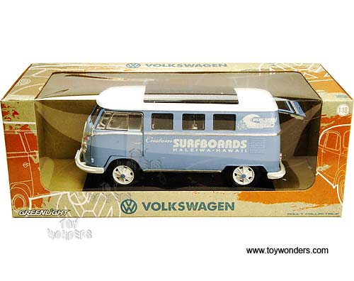 Greenlight Hippie - Volkswagen Microbus (1962, 1/18 scale diecast model car, Blue) 12837