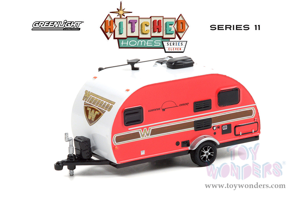 Greenlight - Hitched Homes Series 11 | Winnebago Winnie Drop Travel Trailer (2017, 1/64 scale diecast model car, Red/White) 34110E/48