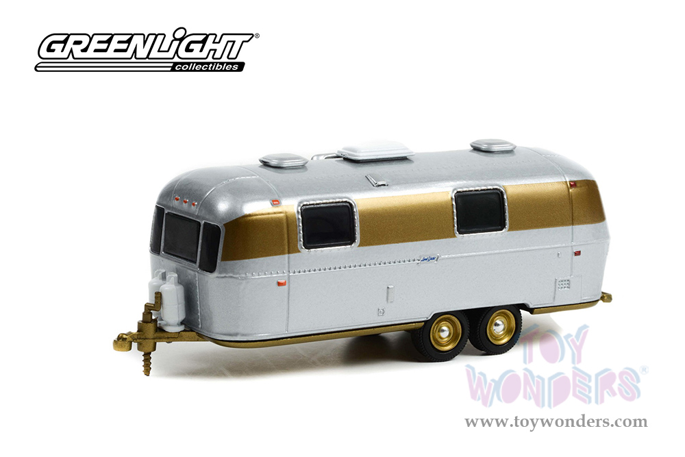 Greenlight - Hitched Homes Series 12 | Airstream Double-Axle Land Yacht Safari Custom Travel Trailer (1972, 1/64 scale diecast model car, Chrome and Gold) 34120C/48