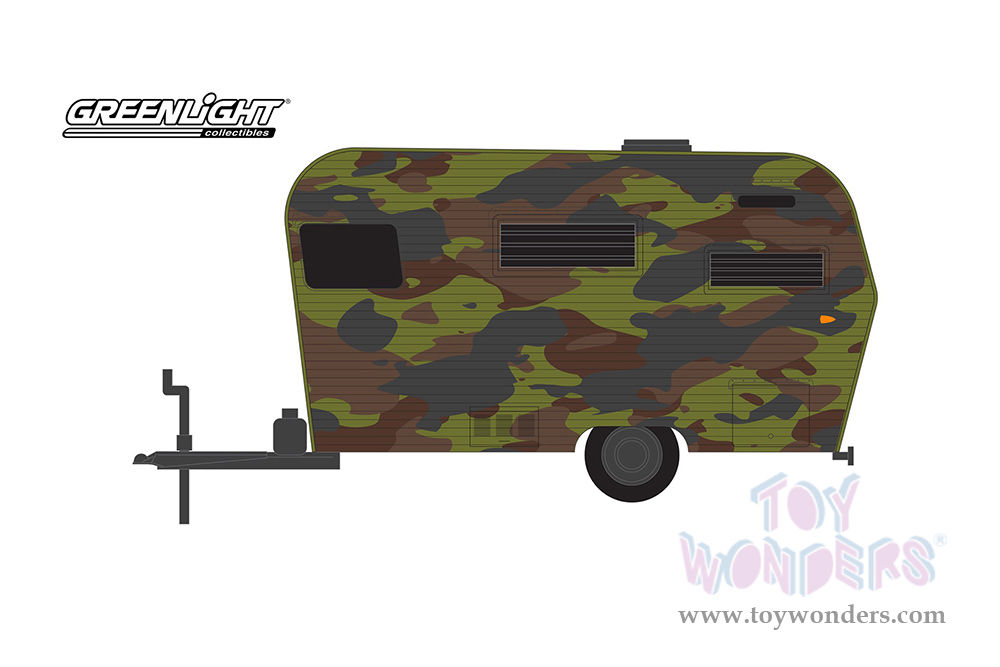Greenlight - Hitched Homes Series 13 | Siesta Travel Trailer (1958, 1/64 scale diecast model car, Green Camouflage) 34130B/48