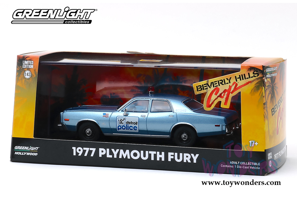 Greenlight Hollywood - Beverly Hills Cop Plymouth Fury Detroit Police (1977, 1/43 scale diecast model car, Blue) 86565